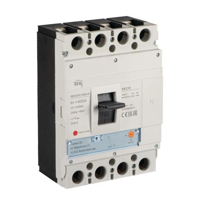 Wyłącznik kompaktowy KMCCB-RT-400A-4P reg. czł. termicz. (0,8‑0,9‑1xIn) 4 bieguny Ics 50kA Icu 65kA(380/400/415V AC) IP20 38257