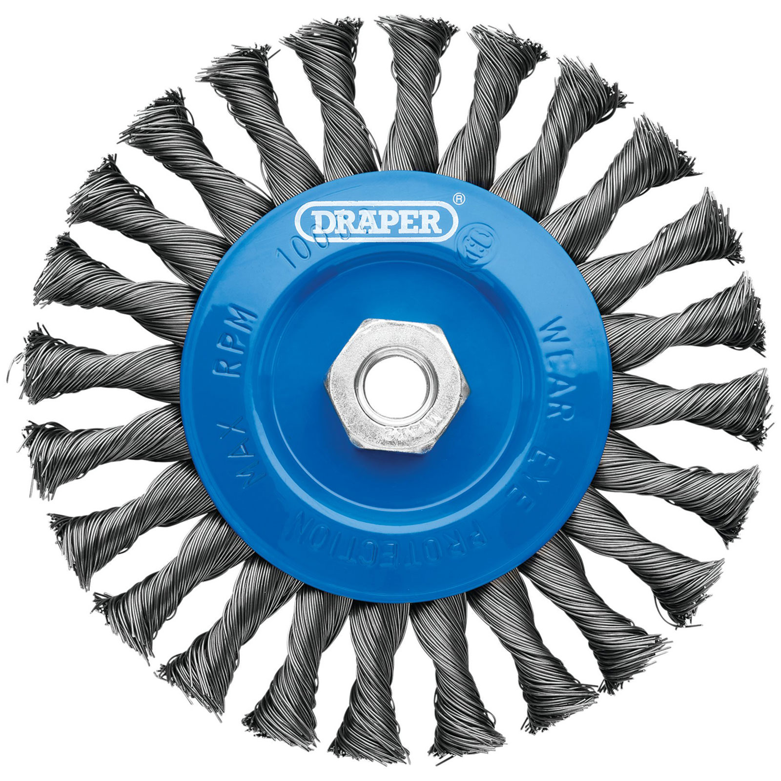 Draper 08059 Steel Twist-Knot Flat Wire Wheel Brush 150mm M14 - 08059