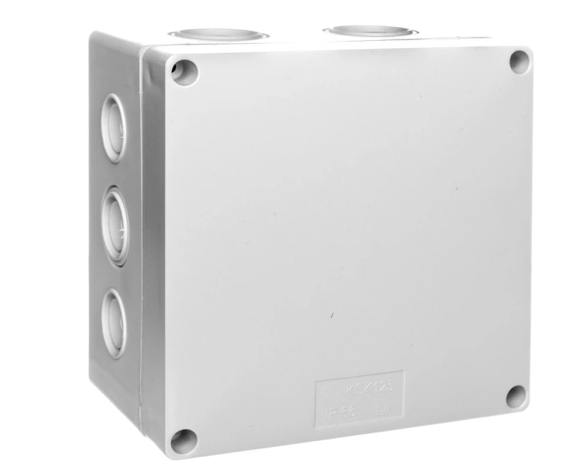 1. Puszka instalacyjna KSK 125 natynkowa 126x126x76mm bezhalogenowa hermetyczna IP66 szara 40.36