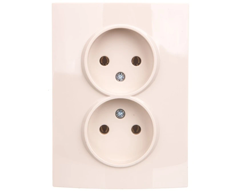 LOGI Gniazdo podwójne 2x2P kompletne śrubowe 16A 250V Kremowy 25155