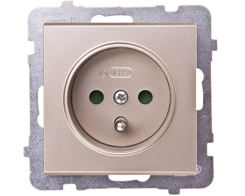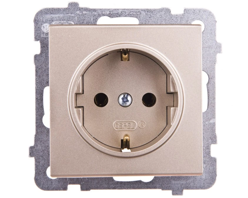 SONATA Gniazdo pojedyncze z uziemieniem schuko IP20 z przesłonami szampański złoty GP-1RSP/m/39 OSPEL