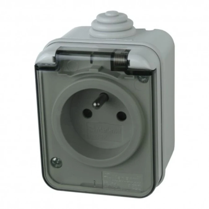 Gniazdo pojedyncze z uziemieniem natynkowe IP44 szare 1592.FR M-L 1175