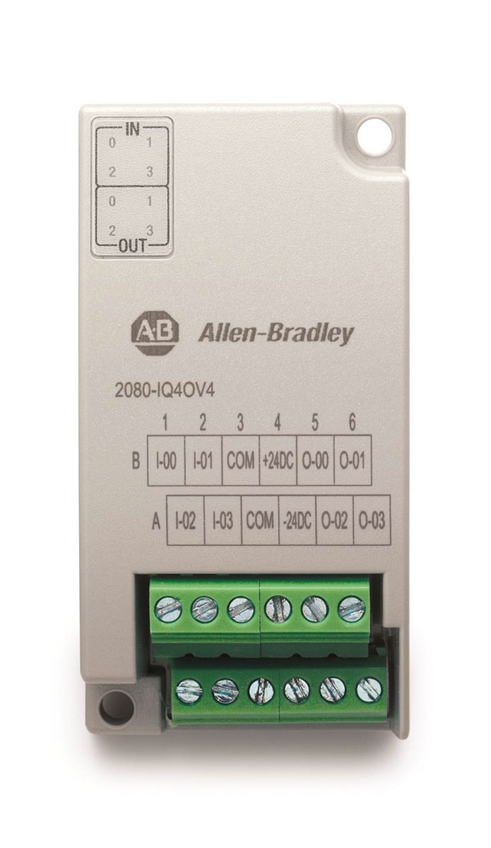 Moduł PLC We/Wy Allen Bradley Moduł PLC We/Wy Bulletin 2080 Cyfrowe Mikrowieża 800 2080-IQ4OV4 30,5 x 62 x 20 mm