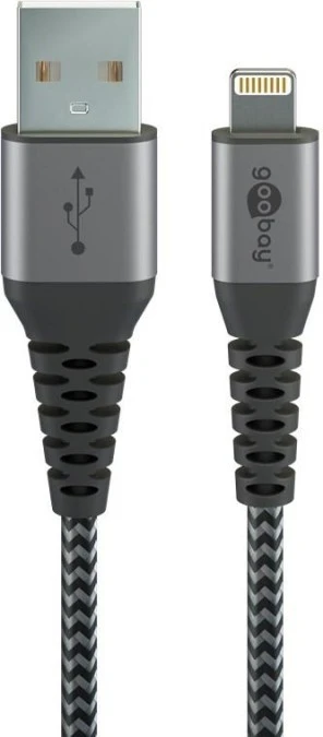 Kabel tekstylny Lightning na USB-A z metalowymi wtyczkami (szary / srebrny) 0,5 m - Długość kabla 0.5 m