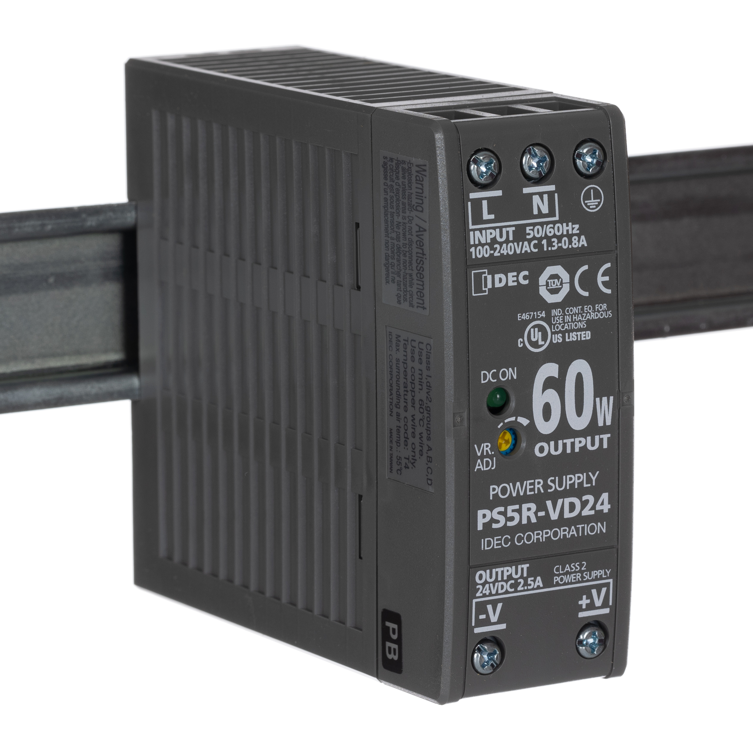 Zasilacz szyny DIN U wy 24V dc I wy 2.5A U we 85 → 264 V ac / 100 → 370V dc Idec 60W impulsowy