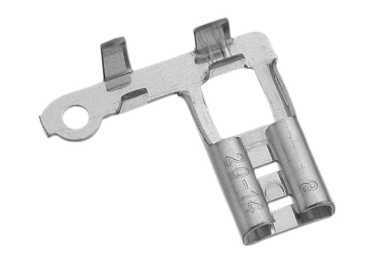 10. Konektor płaski Żeński 0.8 x 6.35mm 12 → 10 AWG, 4 → 6 mm² długość 16.3mm Izolacja: Nieizolowane Cyna 0.37 x100