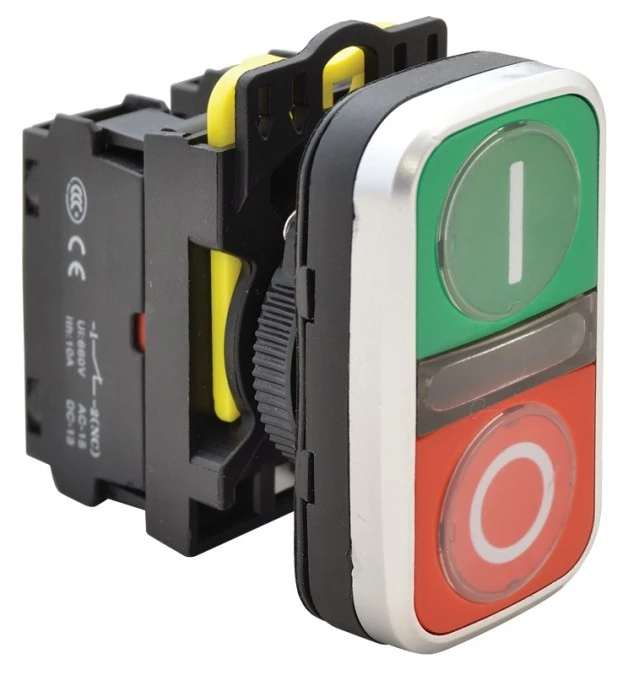 Podwójny przycisk WŁ-WYŁ, I-O, zielony+czerwony NYG3-D1