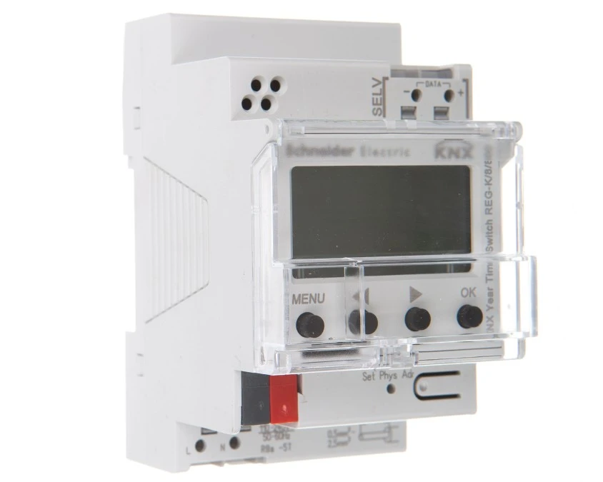 10. Merten KNX Zegar sterujący cyfrowy roczny ośmiokanałowy REG-K/8/800 MTN6606-0008 3610.05