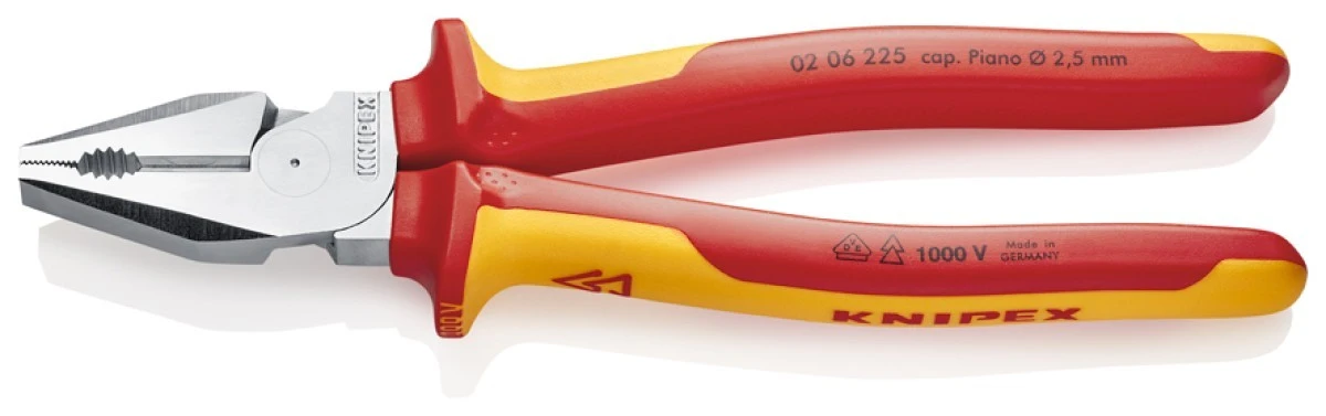 Szczypce uniwersalne ze zwiększonym przełożeniem VDE 225mm chromowane izolowane 1kV Kombinerki do chwytania i ciecia KNIPEX 02 0