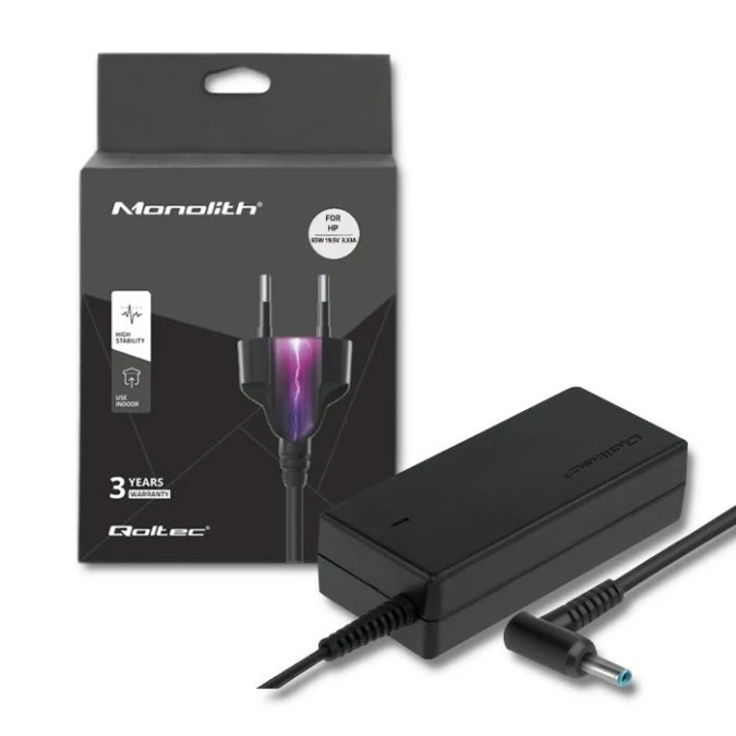 Qoltec Zasilacz do laptopa HP 65W 19.5V 3.33A 4.5*3.0+pin +kabel zasilający