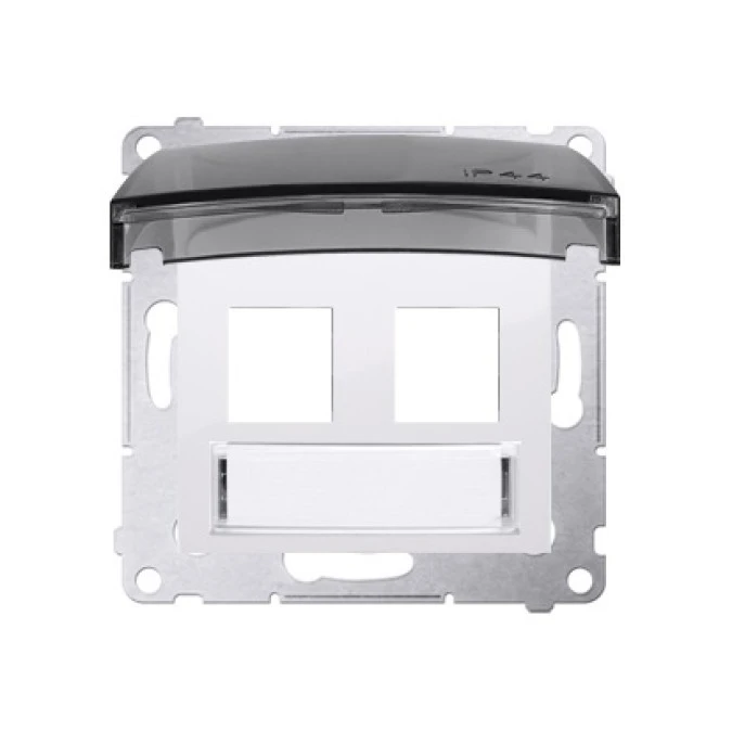 10. Simon 54 Pokrywa gniazd teleinformatycznych IP44 na Keystone podwójna z polem opisowym, klapka transparentna biały i DKP2B.01/1 20.85