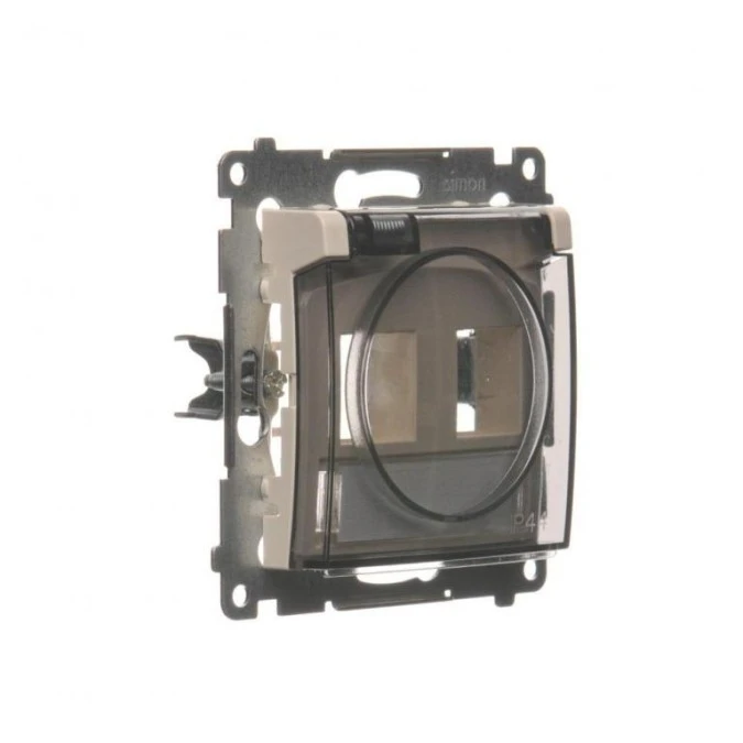 Simon 54 Pokrywa gniazd teleinformatycznych IP44 na Keystone podwójna z polem opisowym, klapka transparentna krem DKP2B.01/41A