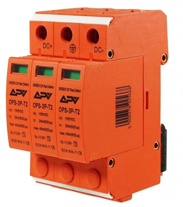 14. Ogranicznik przepięć PV T1+T2 3P 1000V DC 20kA APV-OPS-3P-T1+T2 214.14
