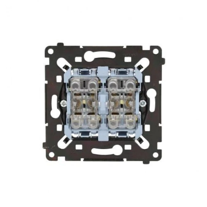 9. Simon 55 Łącznik krzyżowy podwójny z osobnym podświetleniem klawiszy (mechanizm) 10 AX, szybkozłącza, czarna rama SW7/2L2MR 99.29