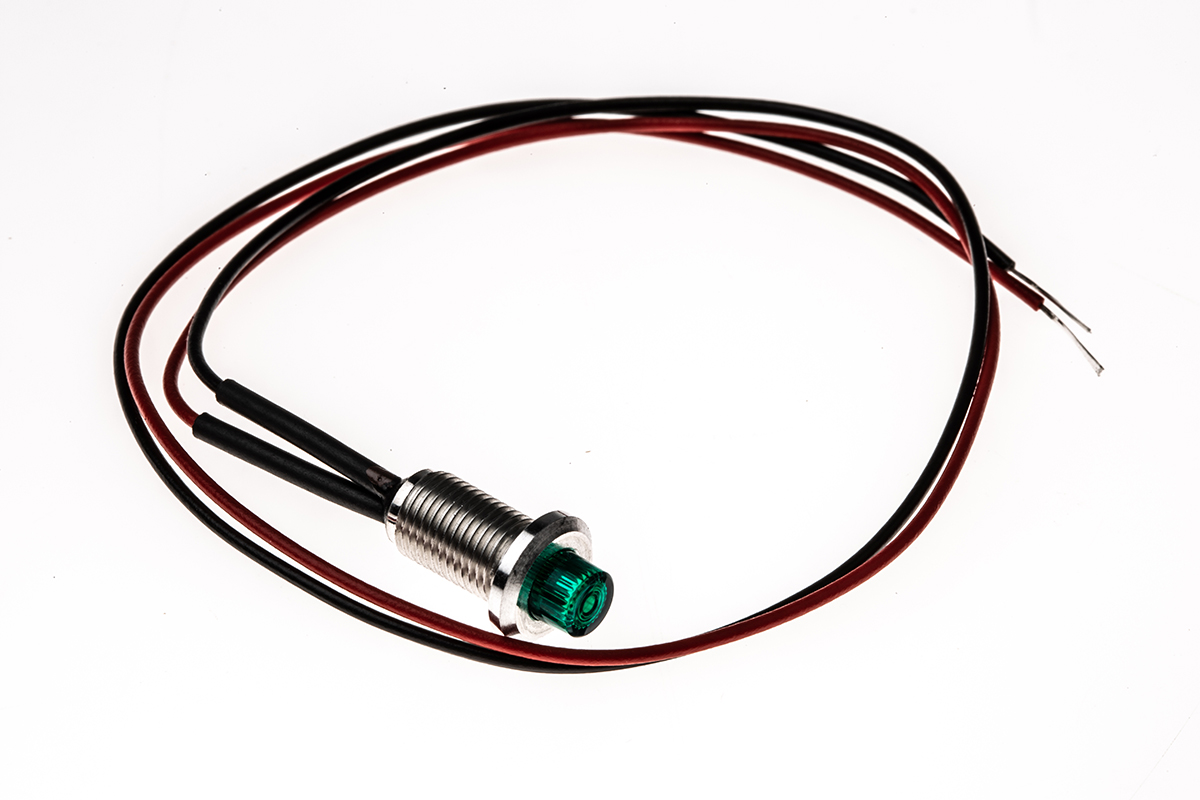 15. Lampka kontrolna do montażu panelowego, zielona 8mm Wyprowadzenia Oxley 94.01