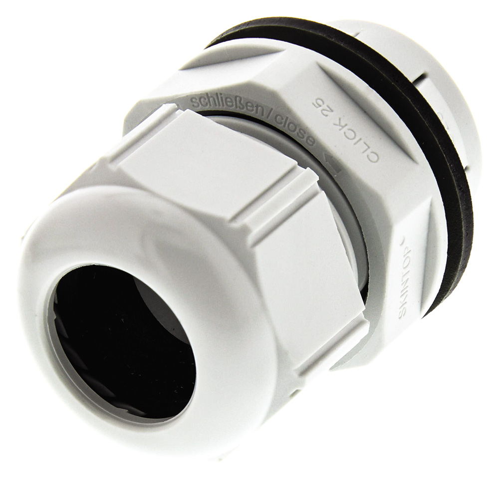 1. Dławnica kablowa gwint M25 Poliamid min. średnica kabla 9mm max. średnica kabla 17mm +100°C IP68 214.41