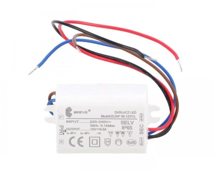 Zasilacz LED 12V DC 6W 0,5A IP65 /z zabezpieczeniami/ ZLDP 06-12YCL 19712-9035