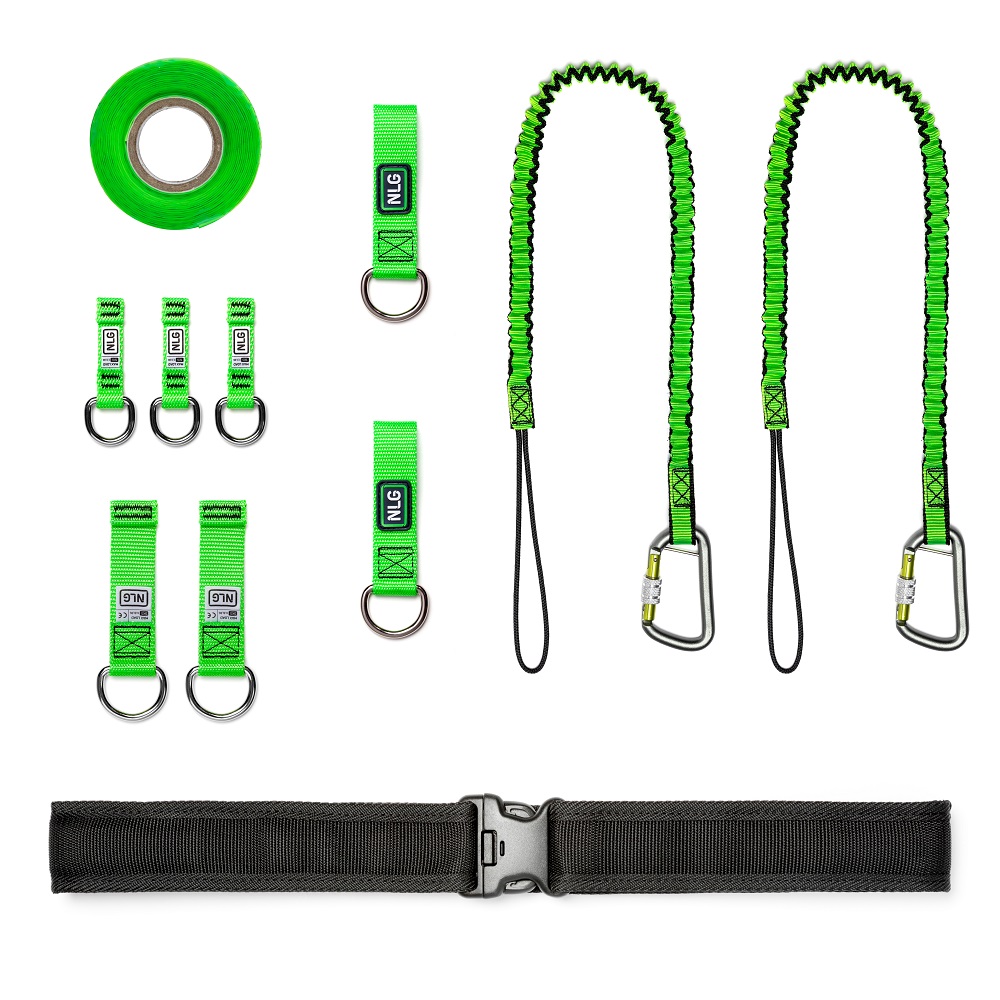Zestaw przeciwupadkowy, Zestaw zawiera taśmę bezpieczeństwa HT22, zabezpieczenie przed upadkiem Stopfor na elastycznej