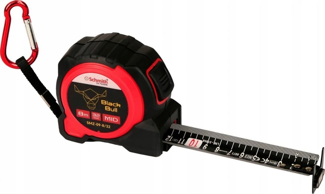 3. Miara metrówka zwijana taśma 8m 32mm mocny magnes neodymowy blokada zaczep Schmith 60.02
