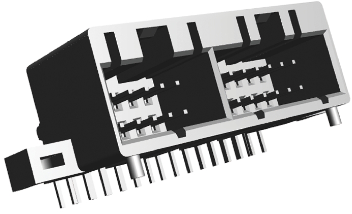 Listwa stykowa PCB 28-pinowe Dual Line Interlock raster: 3 mm Kąt prosty 2-rzędowe TE Connectivity Otwór przelotowy 350
