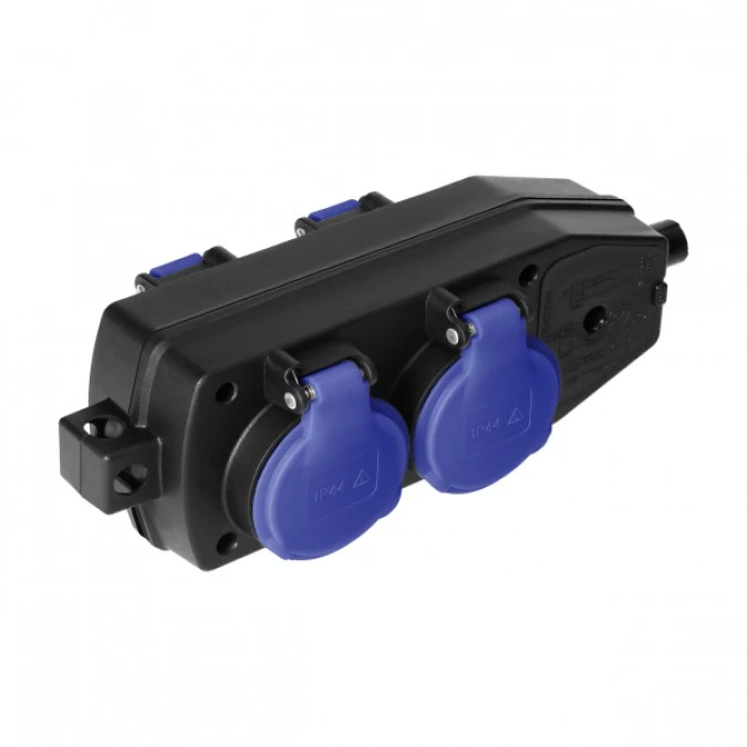 7. Rozgałęźnik bryzgoszczelny i odporny na uderzenia, czterokrotny, IP44, 2x 2x2P+Z (Schuko), 16A, 230V AC OR-AE-13237(GS) 22.78