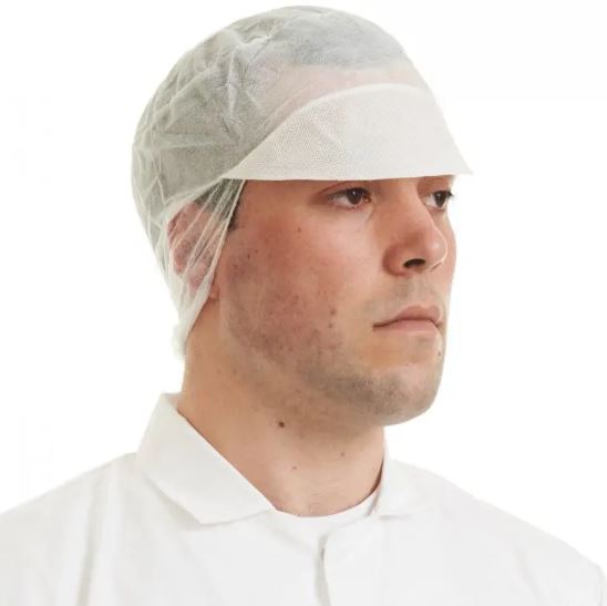 Czepek z daszkiem i przedłużonym tyłem, typ: Nasadka, Biały, zastosowanie: Przemysł spożywczy, Jednorazowe
