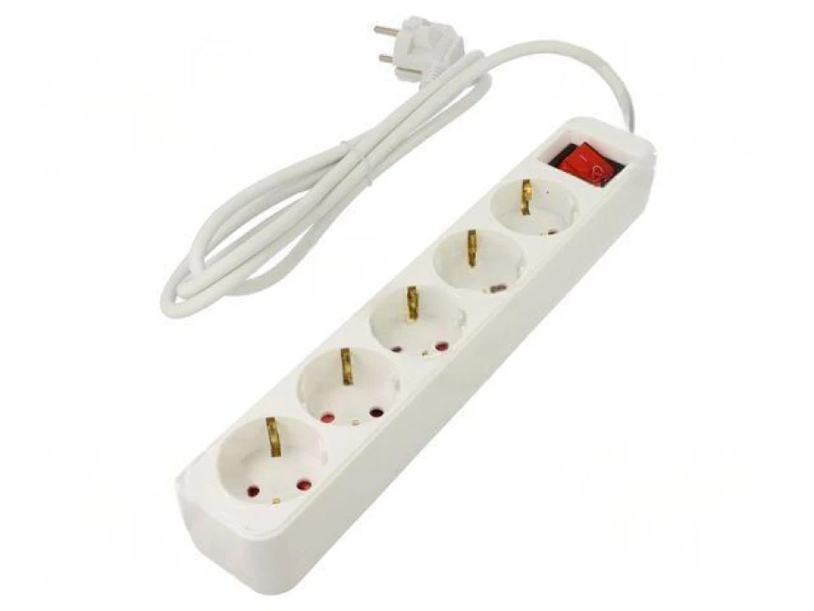 9. Przedłużacz sieciowy 3x1mm2 Gniazda: 5 guma biały 1,5m 10A PS1-05E-0150-W 28.68