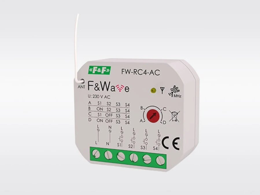 10. Radiowy czterokanałowy nadajnik zdalnego sterowania 230V AC FiWave FW-RC4AC 141.70