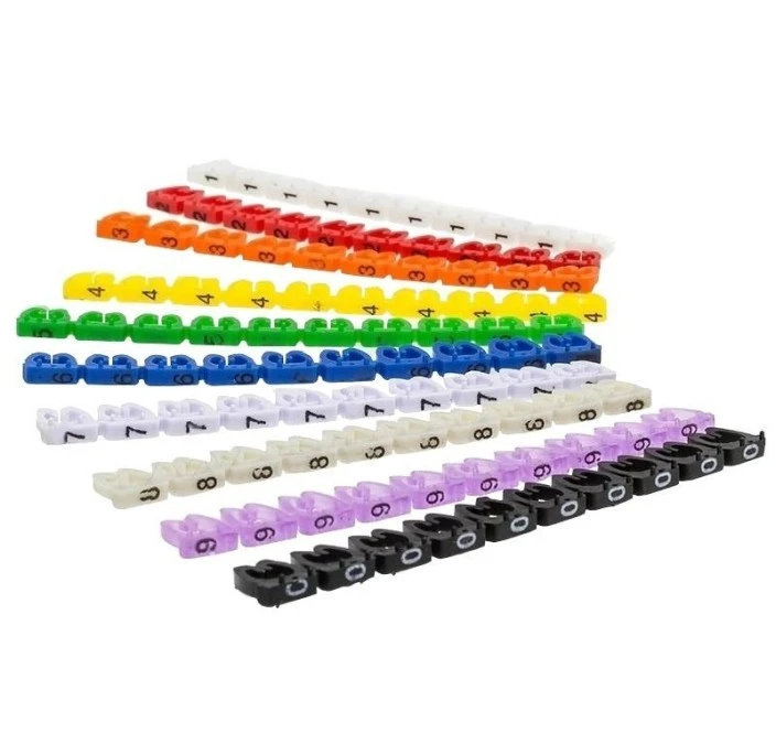 Oznacznik przewodów numery "0-9" MIX kolorów na kable teleinformatyczne 100szt