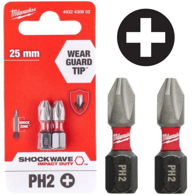 Bity Udarowe Do Wkrętarki Ph2 25Mm 1/4 Shockwave 2Szt Milwaukee