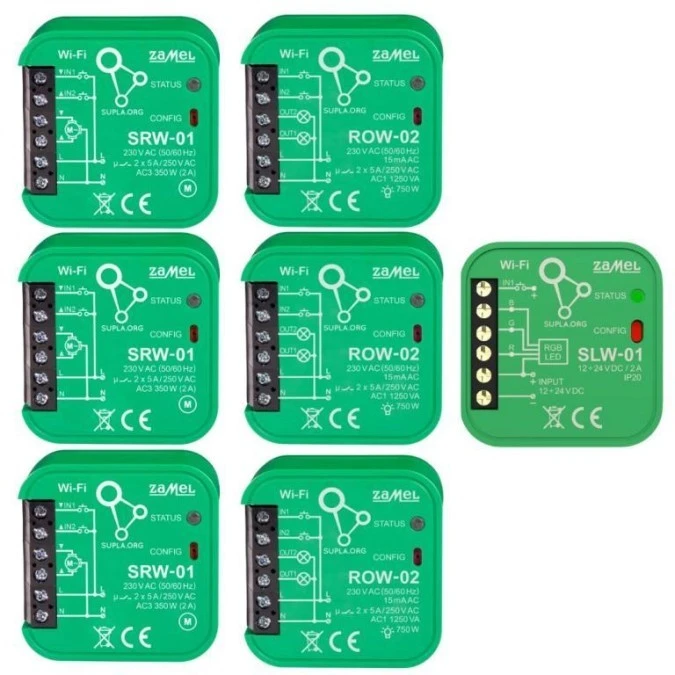 6. SUPLA Zestaw startowy Supla Wi-Fi SRW-01 (3 SZT.) + ROW-02 (3 SZT.) + SLW-01 (1 SZT.) TYP: ZSW-02 SPL10000024 1494.70