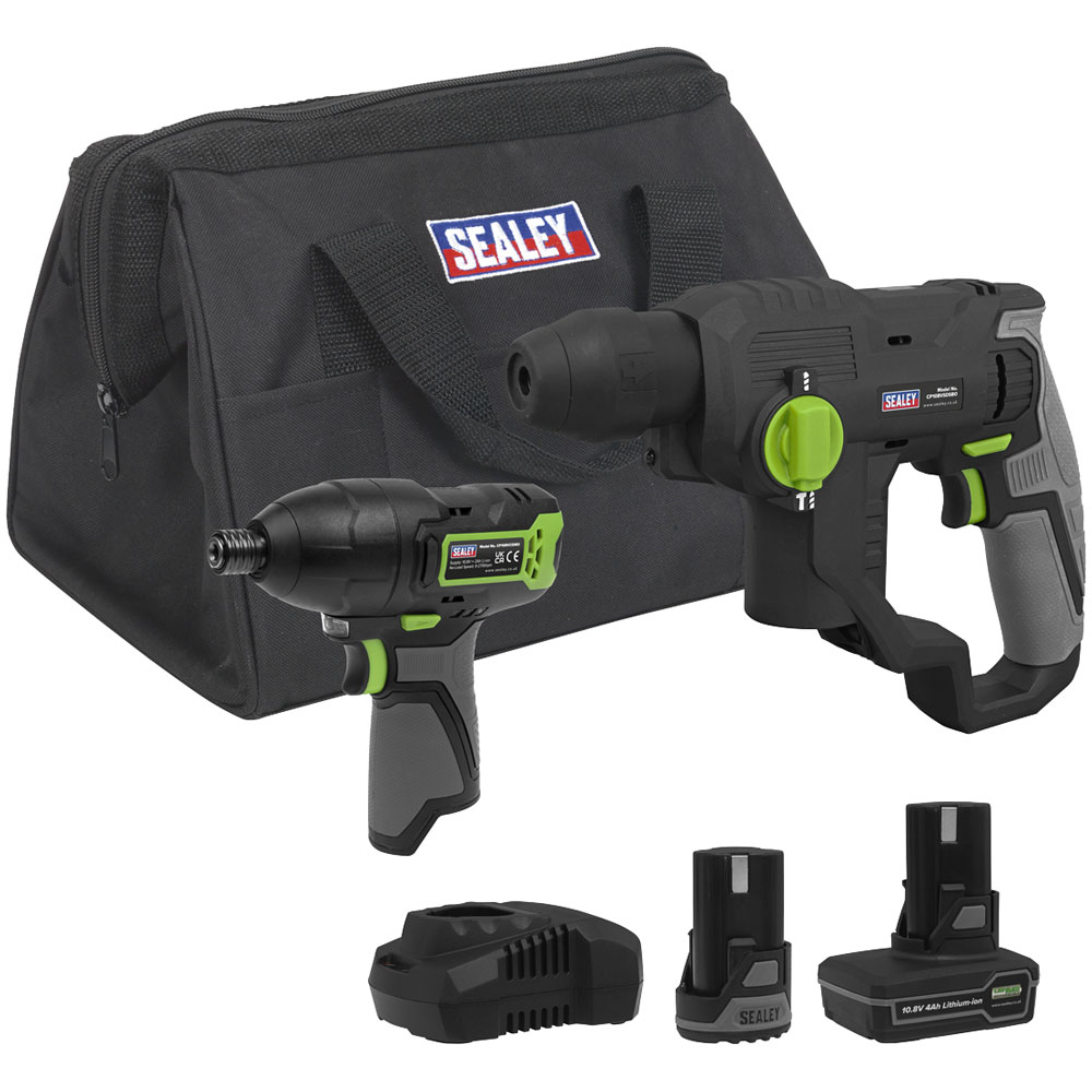 Sealey CP108VCOMBO4 Cordless Rotary Hammer Drill & Impact Driver Kit 10.8V 2 Bat