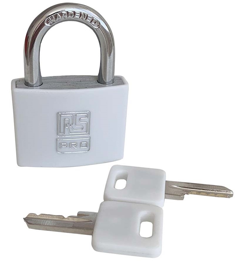 3. Kłódka średnica szekli: 6mm RS PRO z kluczem W budynkach, na zewnątrz aluminiowo-stalowa Biały 55.47