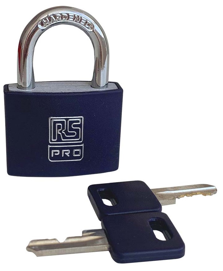 1. Kłódka średnica szekli: 6mm RS PRO z kluczem W budynkach, na zewnątrz aluminiowo-stalowa Niebieski 55.47