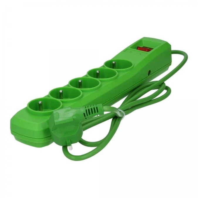 10. Przedłużacz elektryczny Listwa zasilająca antyprzepięciowa ARMAC R5 na 5 gniazd 2P+Z z wyłącznikiem zielona 1,5m 42.91