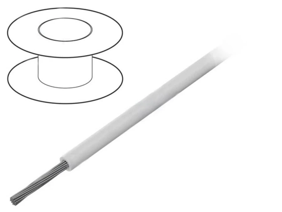 10. Przewód na rolce o długości 30,5m linka Cu, 600V PVC biały 28 AWG 1852 WH005 169.26