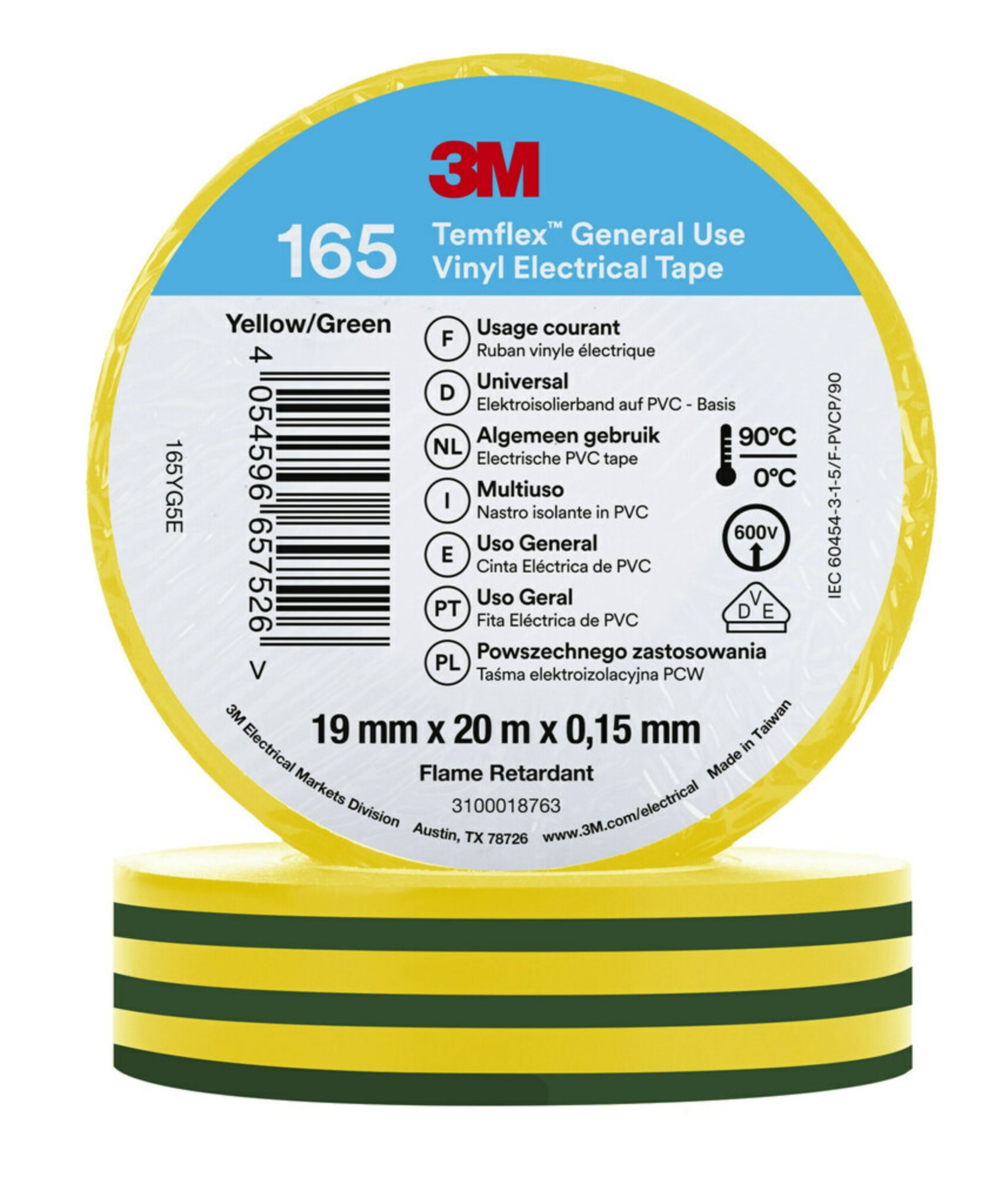 3M 165 green/yellow 19mm x 20m