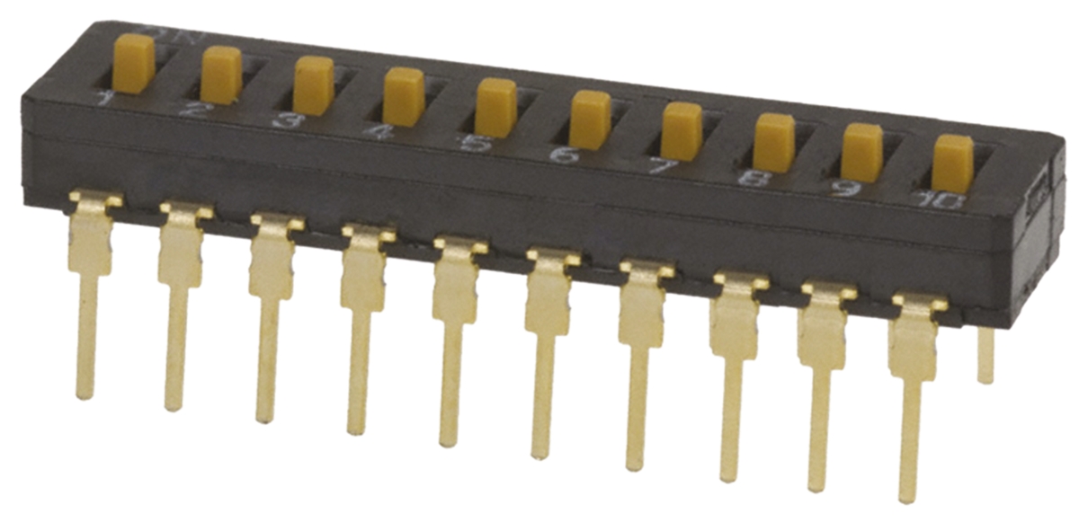 11. Przełącznik DIP 10-pozycyjny 10P THT 100 mA przy 5 V DC -20 → +70°C 39.34 x5