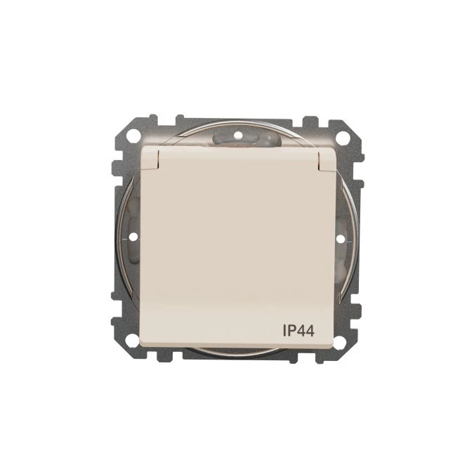 Gniazdo zasilające schuko z przesłonami torów prądowych IP44, beżowy, Sedna Design i Elements SDD212023