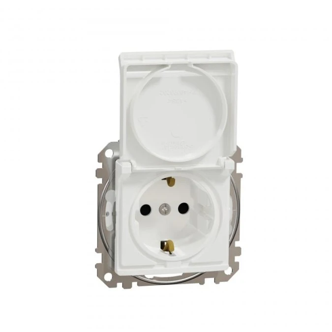 8. Gniazdo zasilające schuko z przesłonami torów prądowych IP44, białe, Sedna Design i Elements SDD211023 25.62