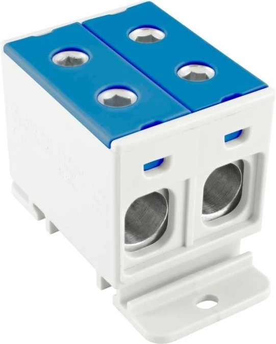 Złączka szynowa rozdzielcza 1-torowa 4-otwory 50mm2 ZGX 2x50 niebieska ENE-00262