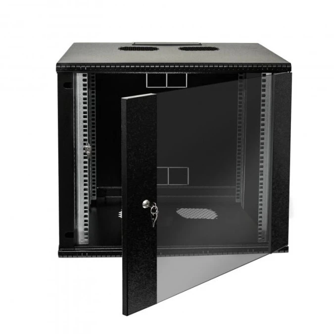 13. Szafa wisząca 19 9U/400mm drzwi przeszklone otwierane boki RAL 9005 BOCK-019-090-400-C 646.18