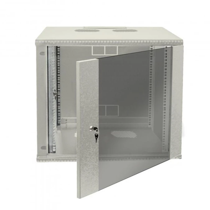 Szafa wisząca 19 9U/400mm drzwi przeszklone otwierane boki RAL 7035 BOCK-019-090-400-S