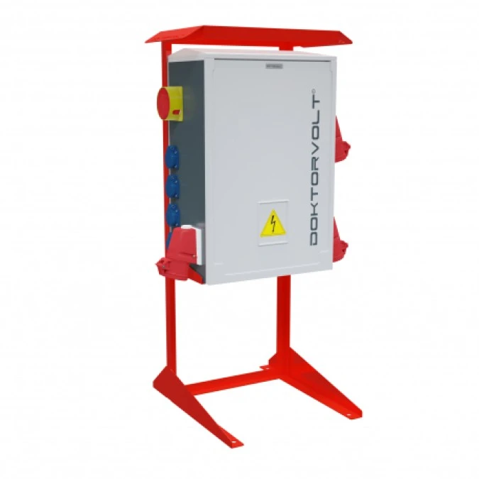 Rozdzielnica budowlana na stojaku z naświetlaczem eXT S/FI SET 32A 2x16A 4x230V schuko Doktorvolt 0027