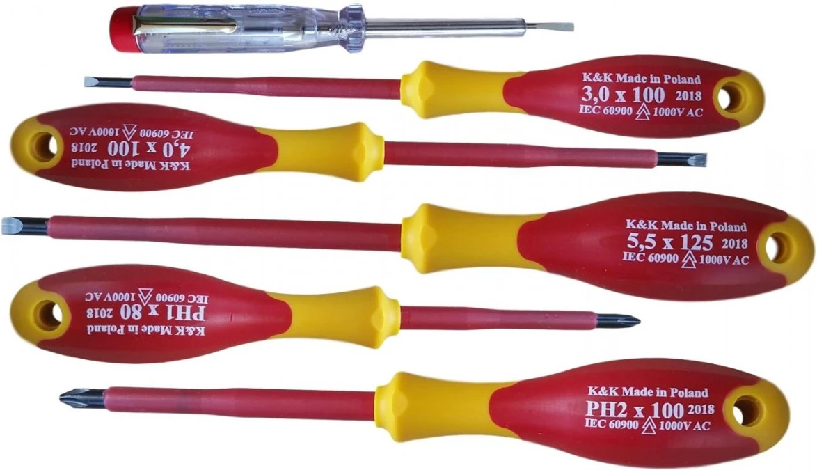 KK23GNPH Zestaw wkrętaków izolowanych 1000V 5 szt. + próbnik napięcia Narzędzia dla elektryka Zestaw śrubokrętów izolowanych