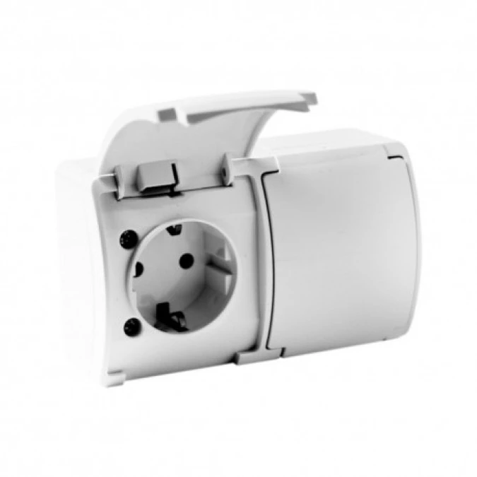 Gniazdo podwójne schuko natynkowe IP44 białe182-01 DV 6444