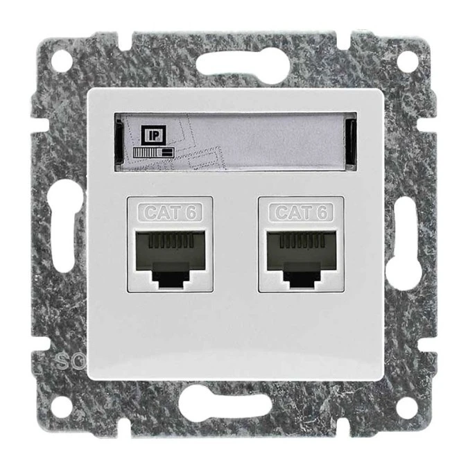 CERAMICZNE GNIAZDO 2xRJ45 PODTYNKOWE BIAŁE BEZ RAMKI 2GP2XRJ45WBR