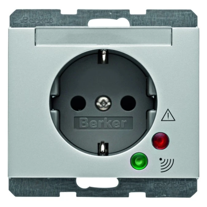 5. BERKER K.5 Gniazdo z uziemieniem schuko z ochroną przepięciową i polem opisowym aluminium 41527103 HAGER 952.02