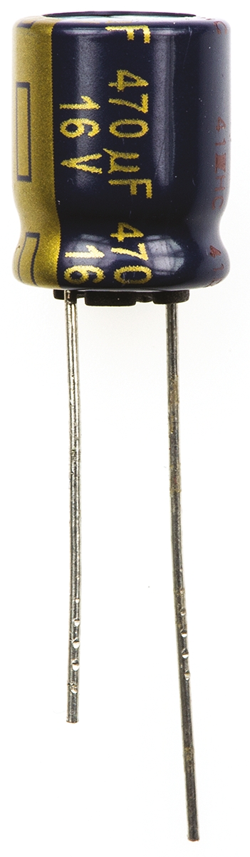 Kondensator 470μF 16V dc Radialny, Otwór przelotowy Panasonic roztaw: 5mm 10 (Dia.) x 12.5mm