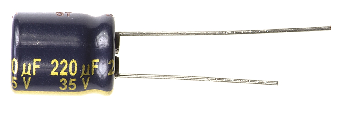 Kondensator 220μF 35V dc Radialny, Otwór przelotowy Panasonic roztaw: 5mm 10 (Dia.) x 12.5mm